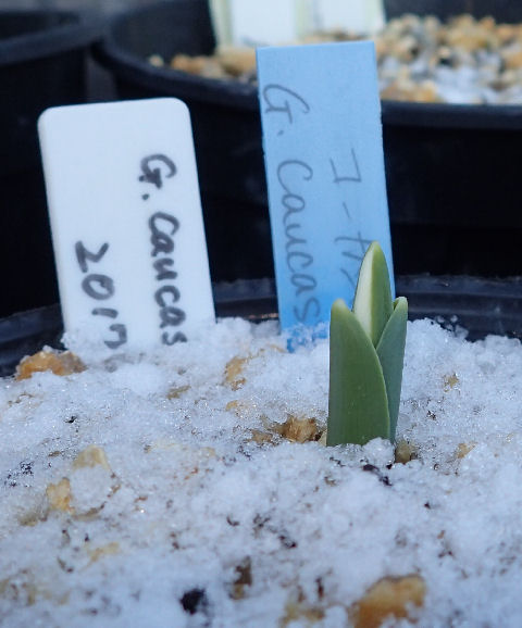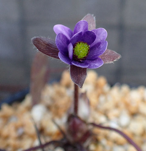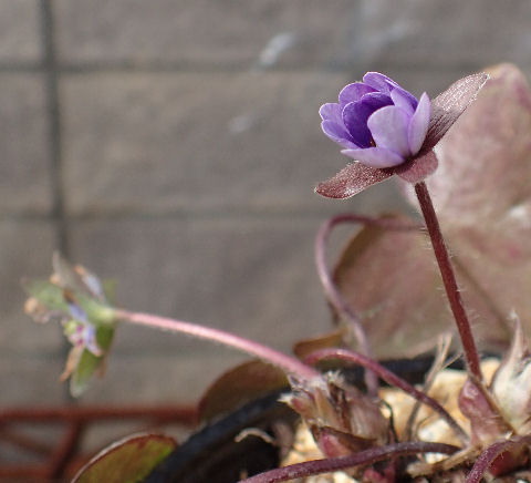 先日園芸店で購入後,南ベランダ在住のフクジュソウ仲間.ラベルには「アソフクジュソウ」とある.