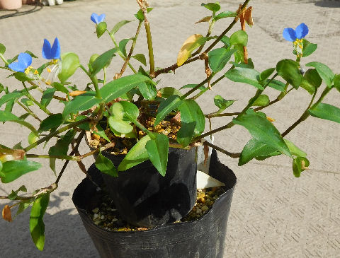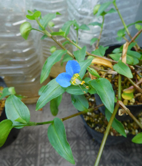 北バルコニーで勝手に生えて勝手に咲いていたツユクサ.