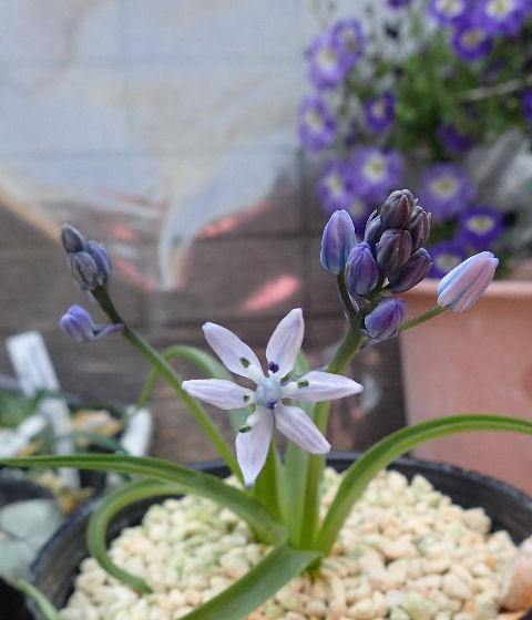 ヒヤシンソイデス・リングラータのようでもあるが,ヒヤシンソイデスの方はもっと葉が太い.シラーのようでもあるが…はて??