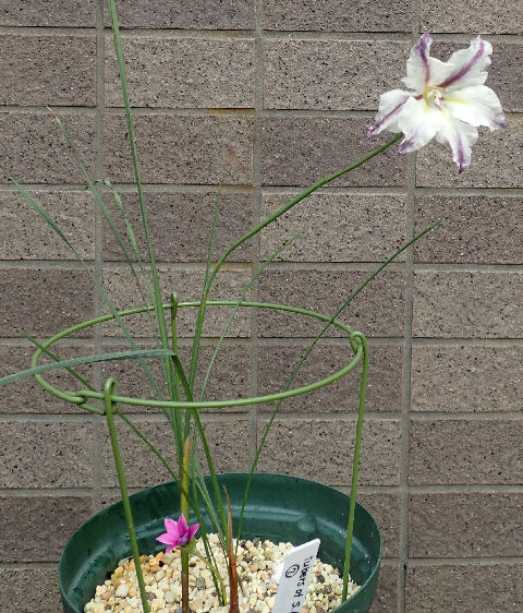 白花はGladiolus(tristris),ピンク花はRomulea sabulosaと判明.