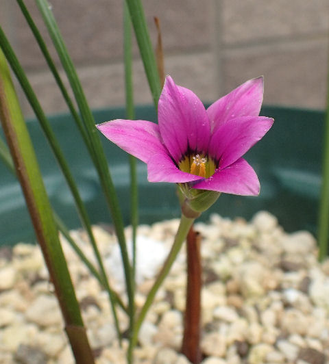 4/20に白花が開花した同じ鉢で,4/21に開花していた濃いピンクの花.ずいぶんチビ.(^^;