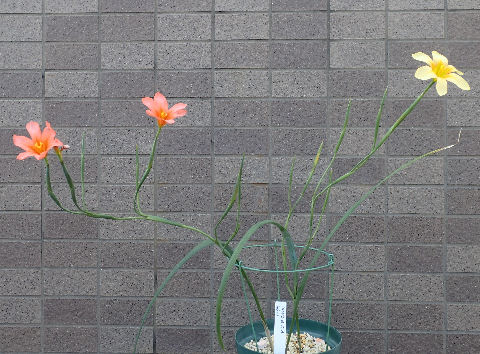 左は名前不明,右は別の方(Moraea栽培のエキスパート)から頂いた球根からの開花."Moraea villosa form b”.
