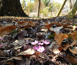 この時期咲いていたのはバイカオウレン,フクジュソウ,セツブンソウ,シクラメン・コウムなど早春おなじみの植物たち.左はフクジュソウ,右はバイカオウレンの群落.