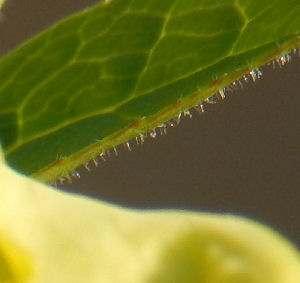 左画像はオドルスの花.葉の裏に毛が生えているのが見えたのでアップにしたのが右画像.(^^;