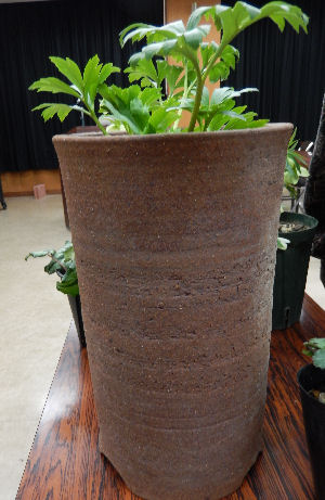 それにしても立派な鉢.山野草鉢で有名な「伝市鉢(でんいちばち)」と言うそうな.丹波産の焼き物らしい.これだけの厚さと深さがあるのは魅力的.トロパエオルムにも良さそう.(^^)