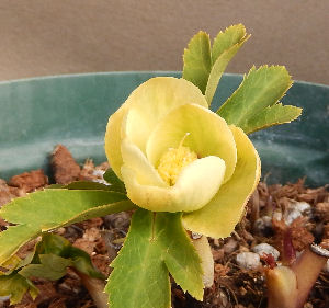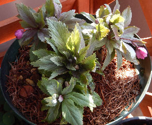 シクラメン・コーナーではドライデニーがずっと咲き続けており,その奥に置いていたこの鉢の開花に気づくのが遅れた.花は全然違うのにねぇ~.(^^;
