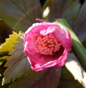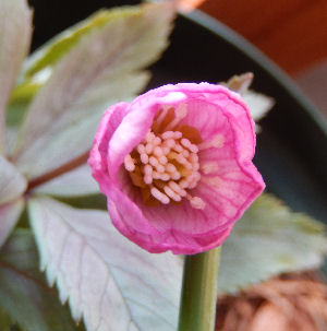 小指の先ほどの大きさの花芽だったが,なんとか開花.濃いめのピンク色.花粉は出るのかしらん?とてもじゃないけど種は付けさせられないなぁ.