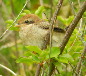 普通モズはクチバシが黒っぽいが,この子は黄色っぽい.