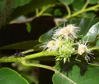 フサフサのクリの花が咲き,その後に出来たクリの赤ちゃん.