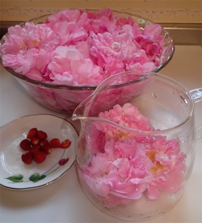 今朝わが家で収穫したロサ・ダマスク・セルシアナの花.