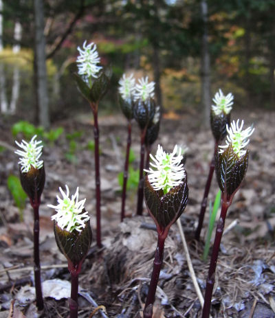 庭を見回すと霜がおりていて,ワイルドストロベリーの葉は白くコーティングされている.