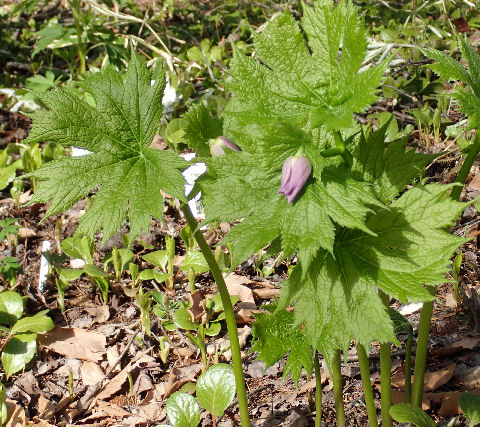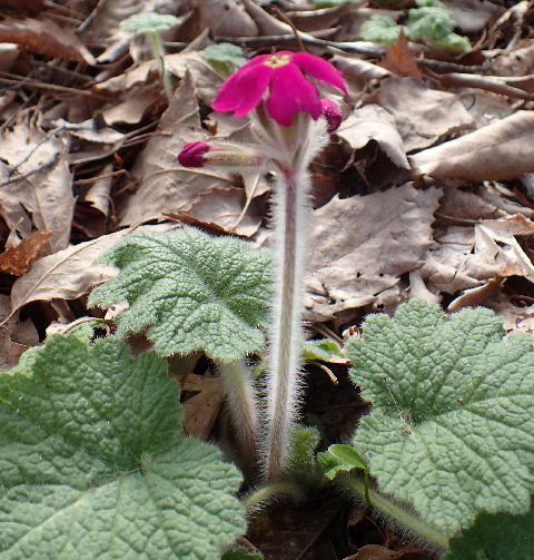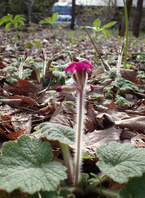 プリムラ・コーナーでは毛深い濃色四国カッコソウが開花.コレは気候があっているのか,徐々に陣地を拡げている.
