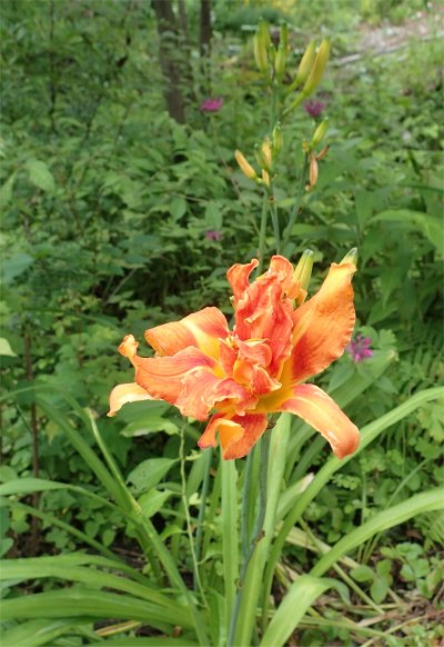 そしてヤブカンゾウと判明.緑の中でオレンジは目立つ.離れた数カ所にあるので一部を除き引っこ抜く予定.