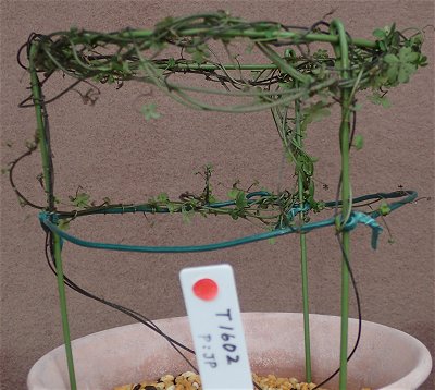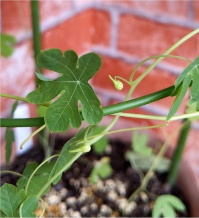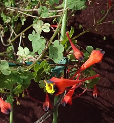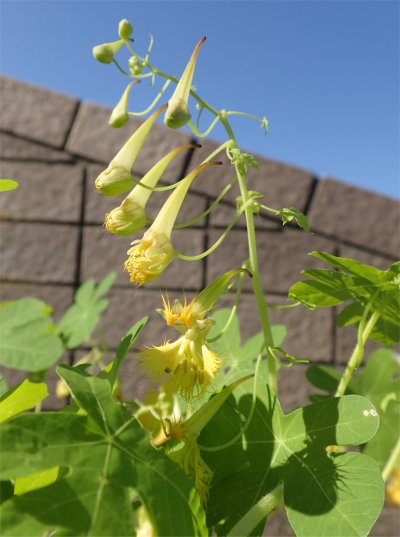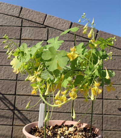 今朝南ベランダの植物たちを見ていたらトリコロール(T. tricolor)が開花しているのを発見.すべてのトロパエオルムの中で開花一番乗り.