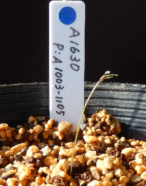 フランスのトロパエオルム栽培仲間から送って頂いた種を半分だけ播いて,南ベランダ無加温ビニール温室に入れていた.暖かい日もあったことで無事に発芽開始,双葉が開いた.