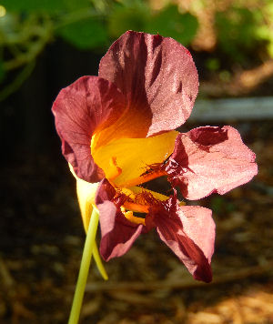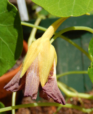 支柱があっても何のその,鉢から飛び出してのたうちながら地面で咲いているのはsmithii.季節問わず環境が合えば咲くタイプ.大阪は冬から春,蓼科では春から秋と気が向けば咲いている.