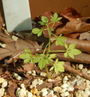 先月黄色の花を咲かせていたのはleptophyllum.すっかり花が終わり種が出来たかと期待していたがスカで残念.画像は葉だけまだ健在の株.他にももう1株葉の健在株がある.花の終わった株をソッと掘って茎を引っ張ってみると抵抗があり,掘り進むと底の方にイモがあった.かなり地下深く潜る性質なのかもしれない.他の枯れた株も近々イモチェックの予定.