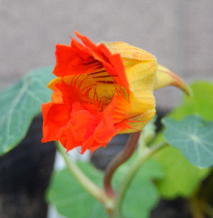 夏に勝手に出てきて大株に成長,たくさん花を咲かせて種まで採れた株に比べたら超ミニ・サイズ.草丈30cmもない.干からびたら困るので北バルコニーの日当たり悪い場所にペットボトル給水器を付けて置いていた.