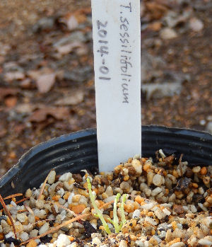 北バルコニーの種捨て場(大鉢)から9月頃発芽,ポット植えしていた株.