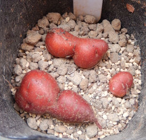 イモたちは南ベランダに置いてあった.これまでの最高気温は39度と昨年よりはマシ.
