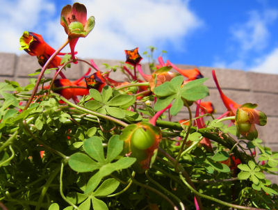 同じ鉢からは本来ブルーの部分がやや赤みを帯びた花も咲いているが,こちらは普通の青いアズレウムとなっている.