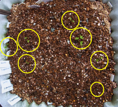 97cを多粒蒔きした大鉢に植えられている.南ベランダに置いて毎日チェックしていたところ,ようやく開花スタートした.