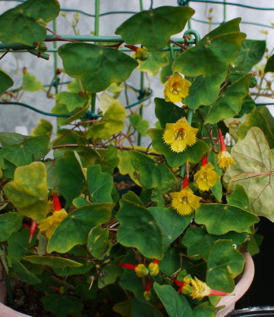 花弁は黄色で距は赤なのでよく目立つ.