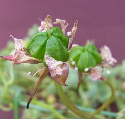 先日の最低気温マイナス5度の日にはガチガチに凍っていた種まきポット.中はどうなっているだろう?とsessilifoliumの種まきポットを探ってみると1つ発芽しているものを発見.鉢底ネットに絡んでいるような感じだったのでポットを引っ繰り返してみた.