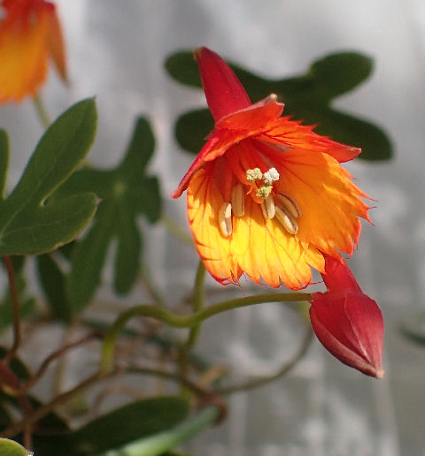 南ベランダ無加温ビニール温室内で開花中のTropaeolum smithii.