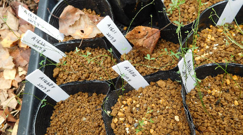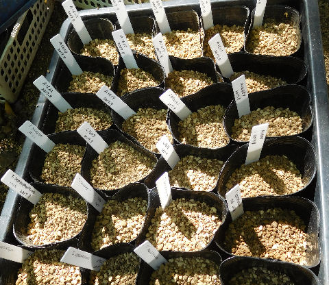 画像はトロパエオルムの種まきポット.ワラワラと発芽中~♪