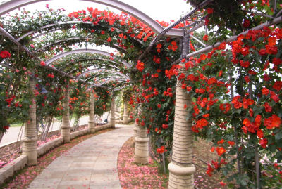 画像左はハイジの村(山梨県フラワーセンター)にて.日本一長いバラのトンネル内.