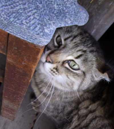 看板ネコのわさびちゃんの姿が見えたので,玄関外の脇に並べられた椅子に座って様子を見ていたら…近づいて来てスリスリ.(*^^*) 昔は触られるのを嫌がっていたのに,最近はそうでもないみたい.お父さんのスギナ君の姿も見えた.