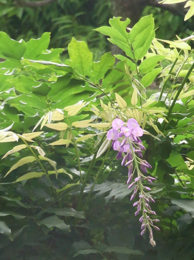 フジ棚で見えた薄紫色のもの…え,今頃?と思って見に行くとやはりフジの花.