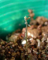 一週間ほど前に発根の兆しは見えていたけど,ようやく地上部に発芽してきたT.beuthii.