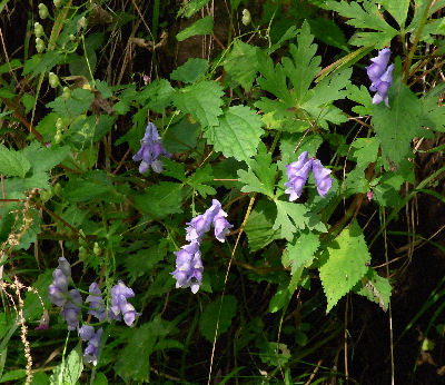 今年はいつもの場所で見ないなぁと思っていたら,水路脇の土手に生えて下の方へ垂れ下がるようにして咲いていた.そしてちゃんと開花中.やはり9月にはトリカブトを見ないと落ち着かない…と思っていただけにこれで安心.