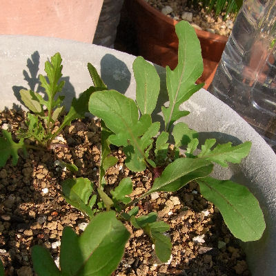 このゴマ味が好きで蓼科では近所のスーパーでよくロケット(ルッコラ)を買っていた.こんな物こそ,自分で育てて要るときに摘んで使えば良いのだけど,庭に直まきした種は発芽した後干からびてダメになったから仕方無い.冬にかけての方が干からびる心配は少ないから安心.その分成長はゆっくりだけど害虫もいないから良しとしよう.
