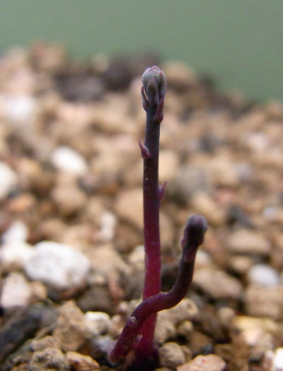 芽が伸びついでに横から別の1本の茎が出てきている.