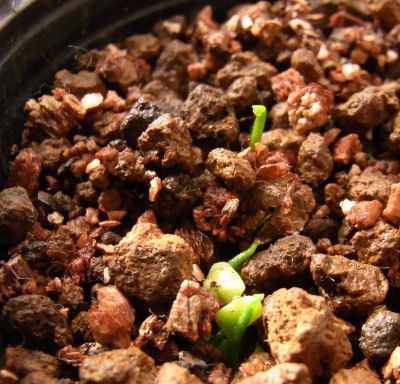 昨年9/24に種まき.蓼科在住中,店で果実を買い,使った後試しに種まき.芽割れは結構早い時期(数ヶ月前)に確認していたが,ずいぶん長いこと発芽しないので,ダメなのかと思っていた.種まきしたのは蓼科だが,秋に大阪に持ち帰り,寒くなってからはずっとマンション室内にポットを置いている.