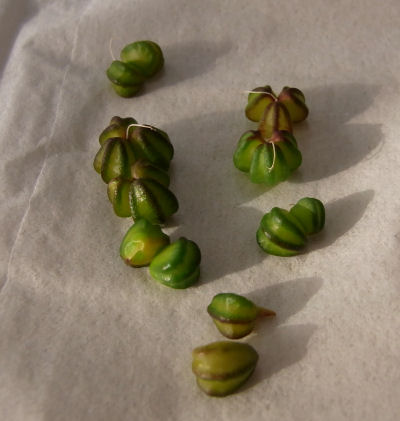 寒い時期なのでまだまだ種は青く完熟とは言い難い.しばらくティッシュにくるんで室内置きで乾燥させる.