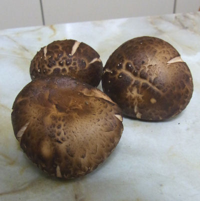 まずは3個収穫,さっそく鍋に入れお腹に収まった.採りたて原木栽培のシイタケはスーパーの菌床栽培のとは違って美味しい.まだ数個残してある.これは後日の楽しみ.(^^)