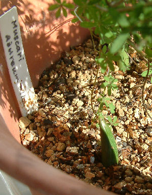 トロパのイモと一緒に埋めておいたムスカリ・アズレウム.