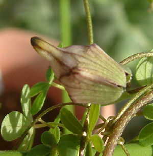 少し割れて正面から見ると花弁が見えかけている.天気が良ければパカッと開いてくれそうな気もするが,,,今日はあいにく肌寒い曇り空.