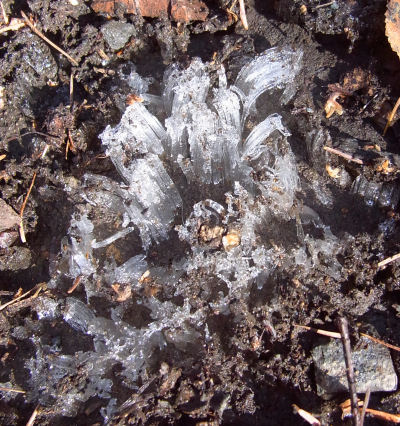 毎年11月になると蓼科では霜柱が見られる.何か植えている場所だとショックだが,歩道なので問題無し.ま,たいてい落ち葉布団で保護しているからこんな惨事は無いけれど.