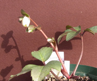 ラベルに「早咲き」とあるだけあって,もう花芽が付いて咲きかけている.1本の茎にいくつも花芽が付く面白い咲き方.葉っぱはシルバー系.開花したら花色が次第に変化するようで楽しみ.(^^)