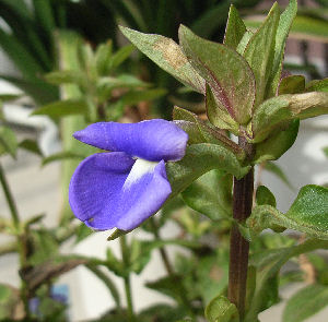 なんで1月のこんな時期に咲いているんだろう?ここは屋根のある南側テラス.日当たり抜群,霜も当たらない.それにしてもこんな時期にブルーキャッツアイが咲いているなんて,暖冬の威力を感じさせる.(~_~;)