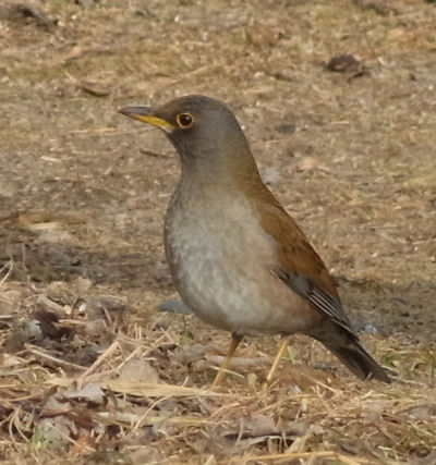 のんびりお散歩している姿をよく見かけたのがツグミ.画像中央は遠目に見たらそのツグミと姿や仕草が似ているが実は違う鳥のシロハラ.そして画像右は本日あちこちで見かけたオレンジ色が美しいジョウビタキ(オス).立派なカメラを持った素人カメラマンがたくさん来ていたので,きっとどこに飛んで行っても良いモデルになっていた事だろう.