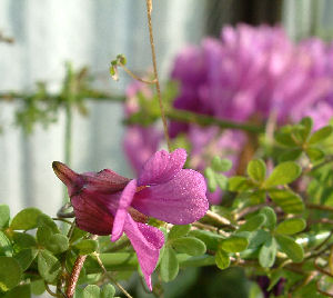 画像で奥にボンヤリと映っているのがシクラメン「フレグランスミニ・アメジストブルー」.なんだか色が良く似てない?ということは,このレピドムの花色も「アメジストブルー」なんだろうか.