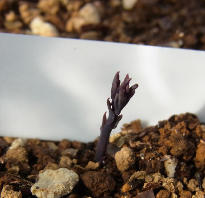 これはたぶんpolyphyllumだろう.いつ播いたものだか定かではないが,寒さに当たって出てきた模様.これだからトロパの種は捨てられない.(いや,種捨て場に捨ててる訳だが)