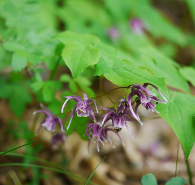 山には紫系の花が多い.今咲いているのはイカリソウ以外にフジ,ムラサキケマン,カキドオシ,ムラサキサギゴケ,スミレ,ラショウモンカズラ…などなど.