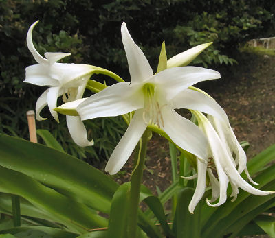 毎年テッポウユリみたいな白い花を咲かせる.
